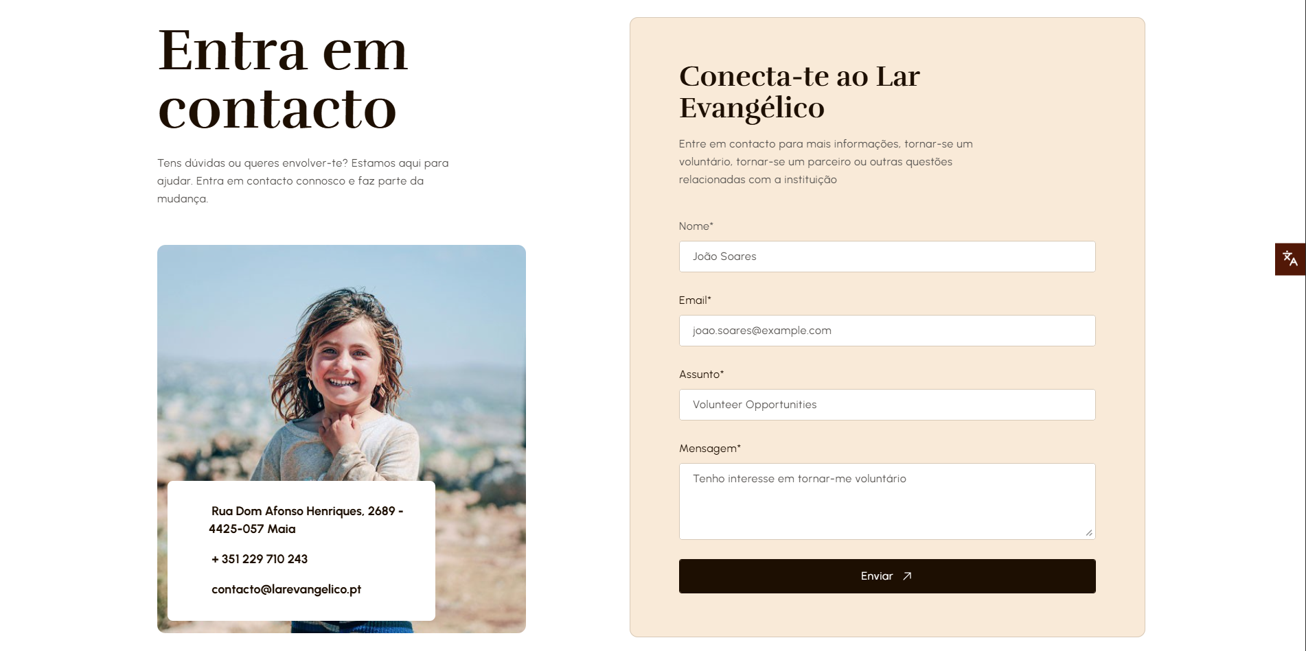 Site institucional para o Lar Evangélico, uma associação dedicada à ajuda e apoio aos mais desfavorecidos. O website apresenta a missão e valores da instituição, os serviços de apoio social disponíveis, informações sobre como contribuir e contactos para voluntariado e doações. O projeto incluiu também trabalho de branding e identidade visual, com criação de logótipo e linha gráfica.