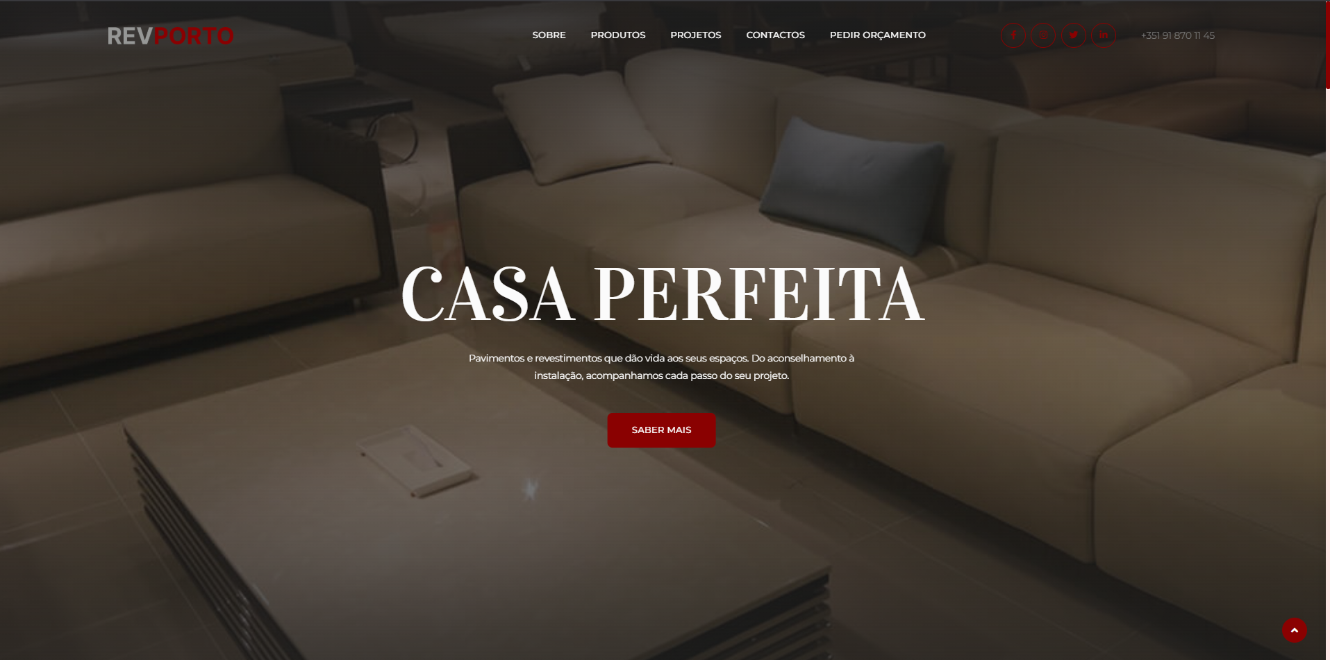 Site institucional para a Revporto - Revestimentos, Decorações e Construções, empresa com mais de 30 anos de experiência no mercado. A Revporto é especializada na comercialização e aplicação de pavimentos, revestimentos de parede, decorações e renovações de interiores. Oferecem uma vasta gama de produtos incluindo vinis, linóleos, borrachas, laminados, madeiras, carpetes, têxteis, papéis de parede, estores, relva artificial, decks, entre outros. O novo website apresenta o portfólio de produtos e serviços, projetos realizados e contactos da empresa.