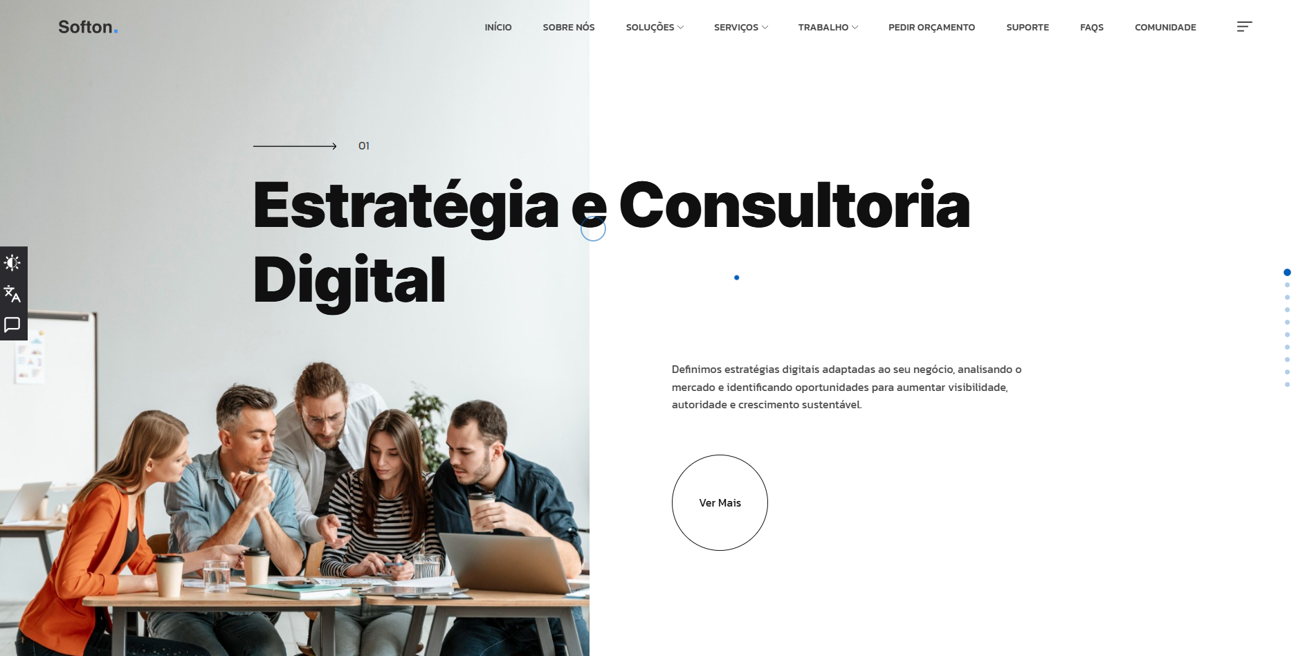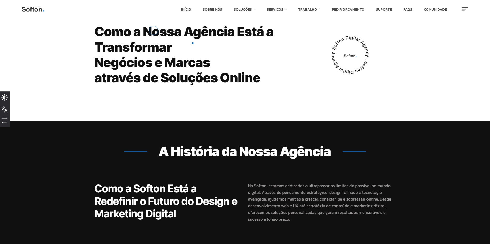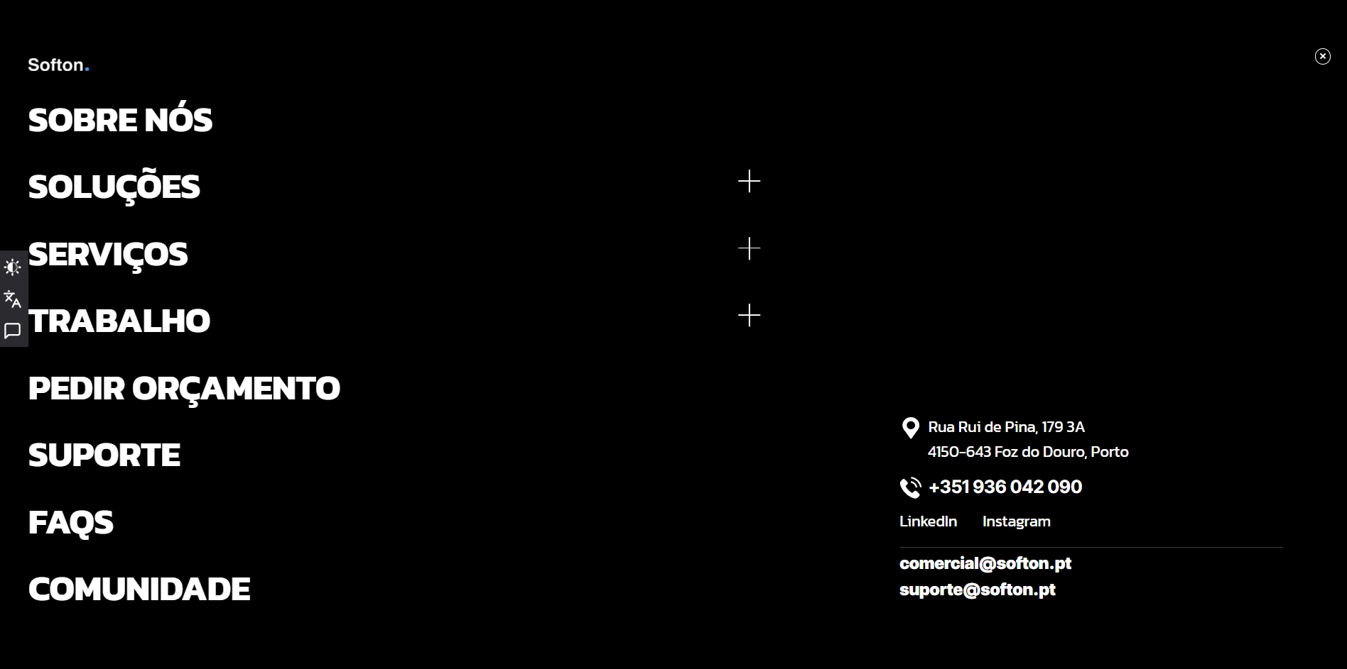 Ecossistema digital completo para a Softon, empresa especializada em serviços de informática e transformação digital. O projeto engloba um site público institucional com apresentação de todos os serviços (consultoria digital, branding, UI/UX, desenvolvimento web, integrações ERP/CRM, marketing digital, BI, entre outros), uma comunidade interna dedicada a clientes, sistema de helpdesk para suporte técnico, e integração com chatbots de IA para atendimento ao público. A solução oferece uma experiência integrada que conecta a presença online da empresa com ferramentas internas de gestão e suporte ao cliente. O projeto incluiu também trabalho de branding e identidade visual, com criação de logótipo e linha gráfica.